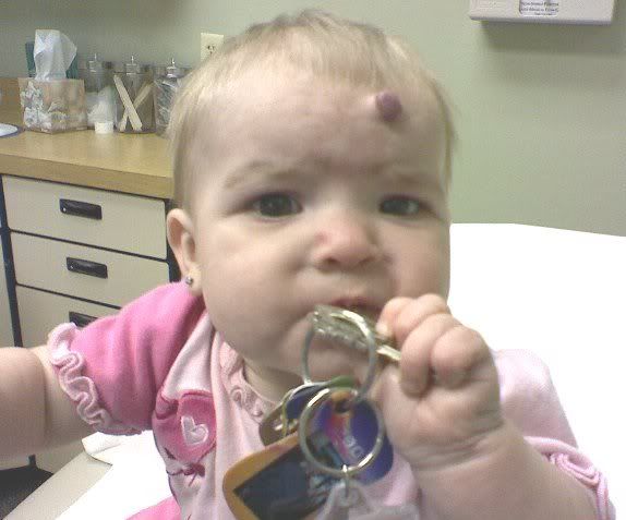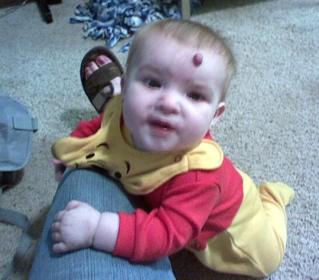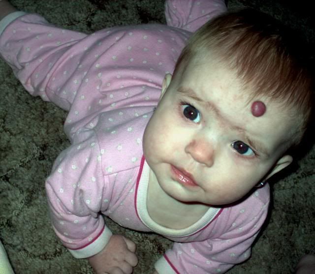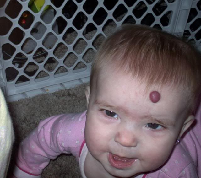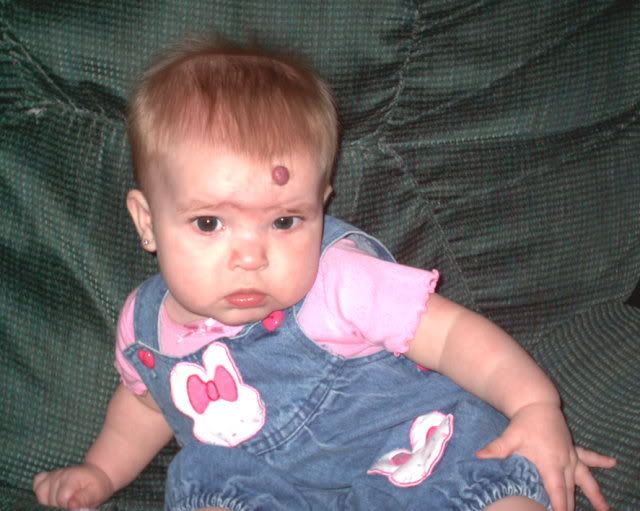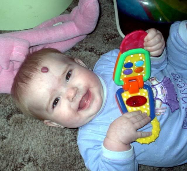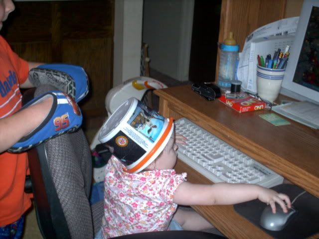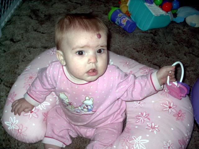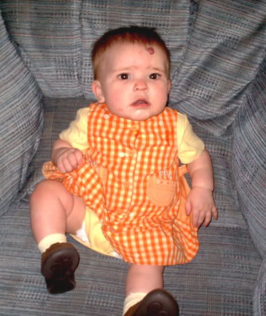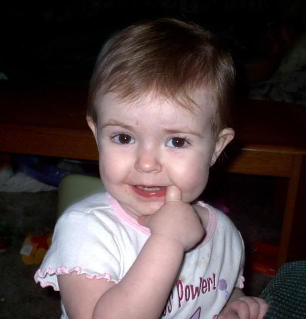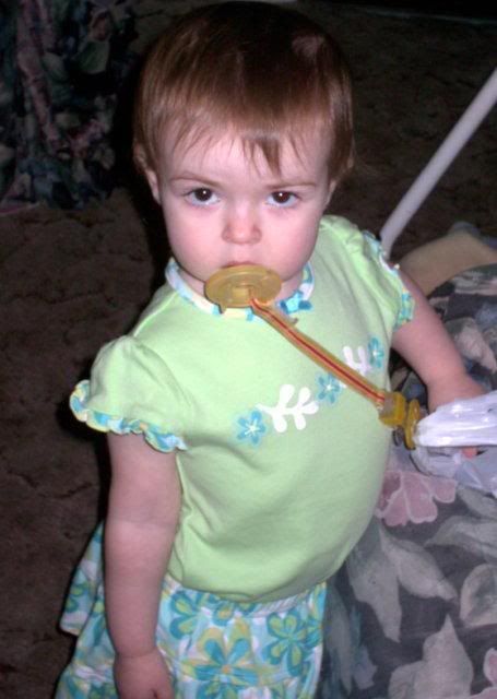 Enjoying her new strawberry shortcake cup, this is how she got cranberry juice on her new outfit!
