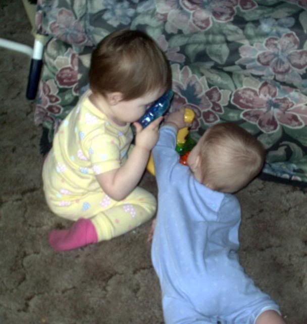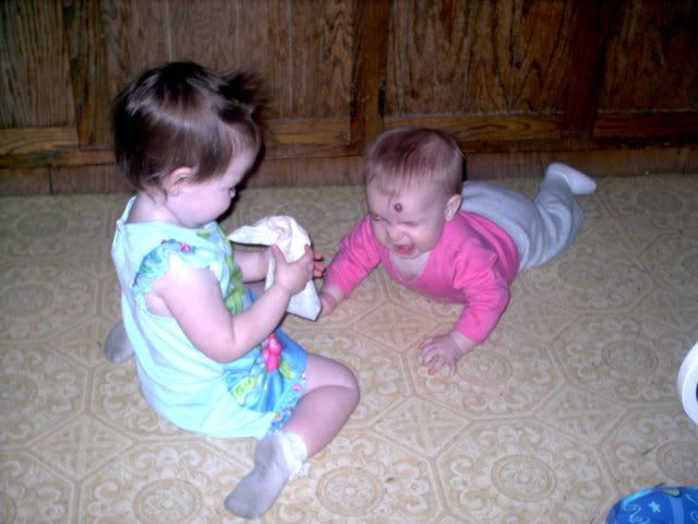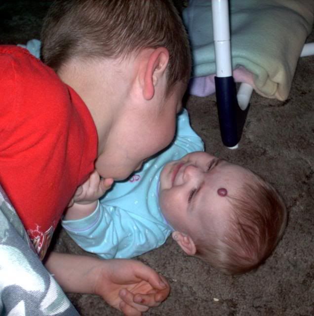 lol I love this pic, her watching Tarby and he was waiting to see if she'd feed him!