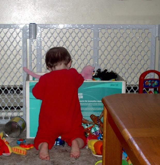Digging in the toybox (missed the pic of her nearly falling in! lol)