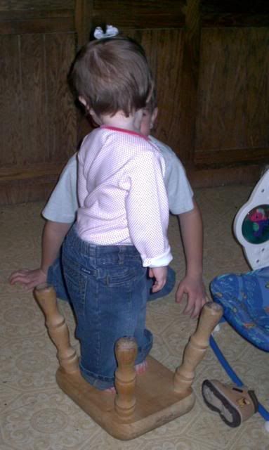 She insists on turning all foot stools upside down and standing or sitting on them!