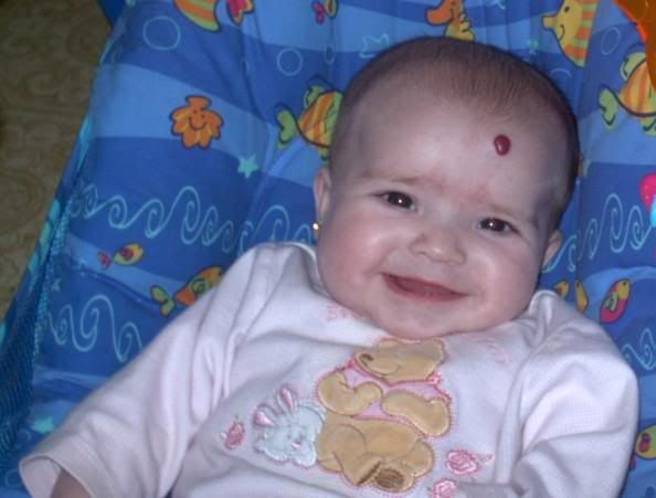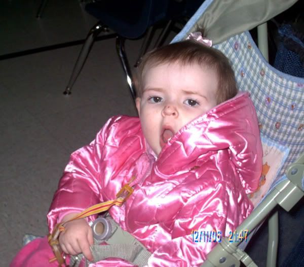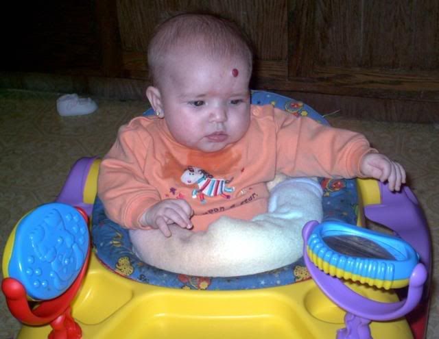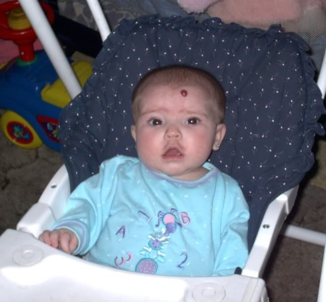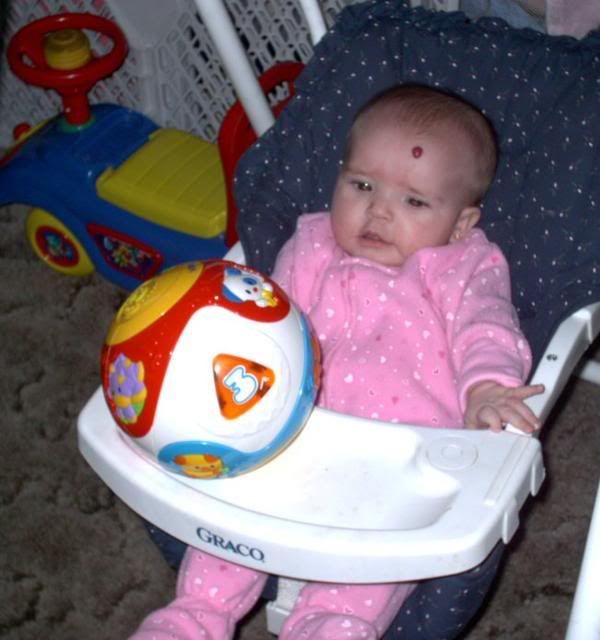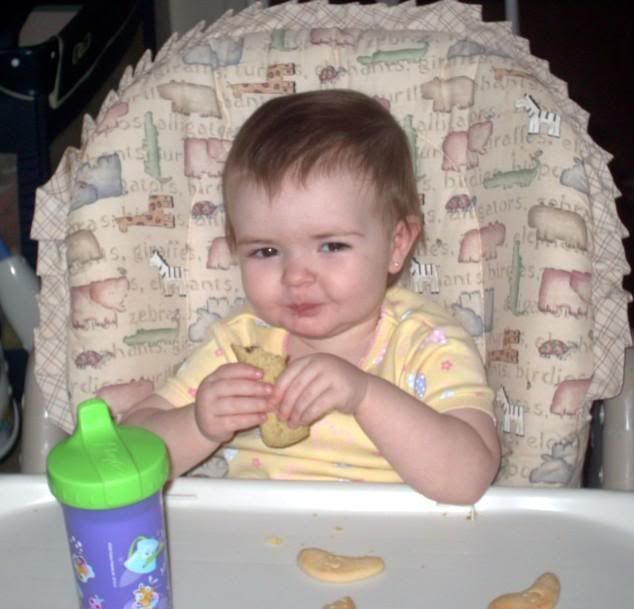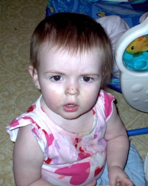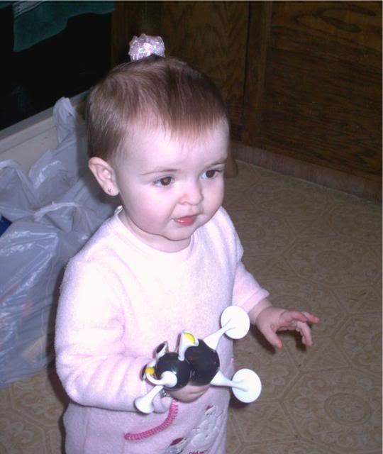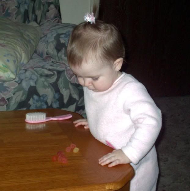 Look it's pebbles with a bow! lol Eating gerber fruit snacks