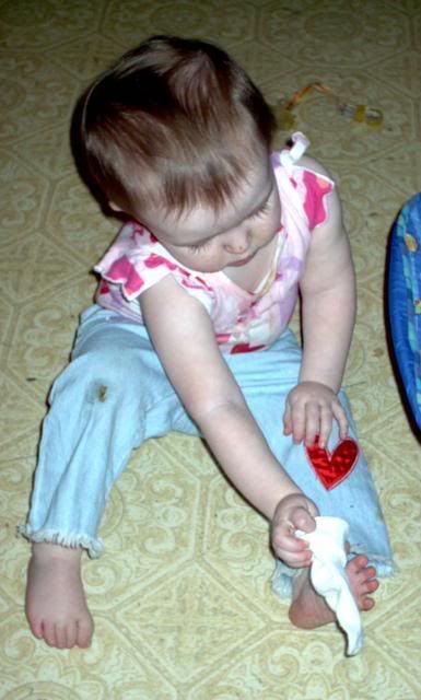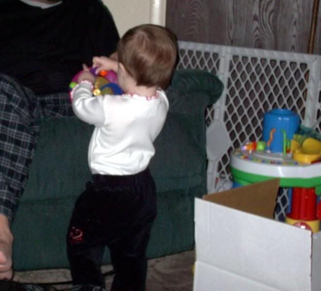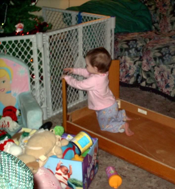 Marlin got tired of pulling her off the coffee table, so he turned it over. This is what she did! lol She had a blast!