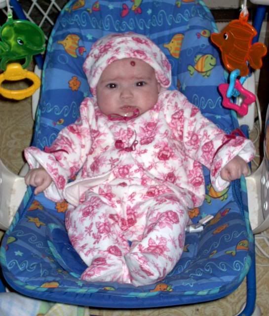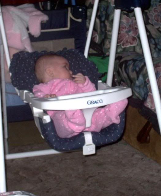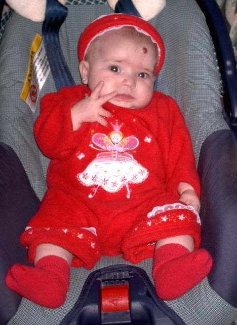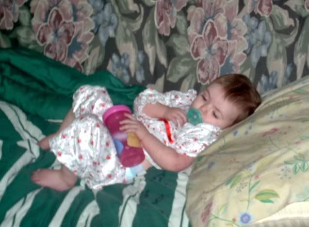 Chowing down on her fingers... can you believe this outfit is a 0/3!! Shes tiny!
