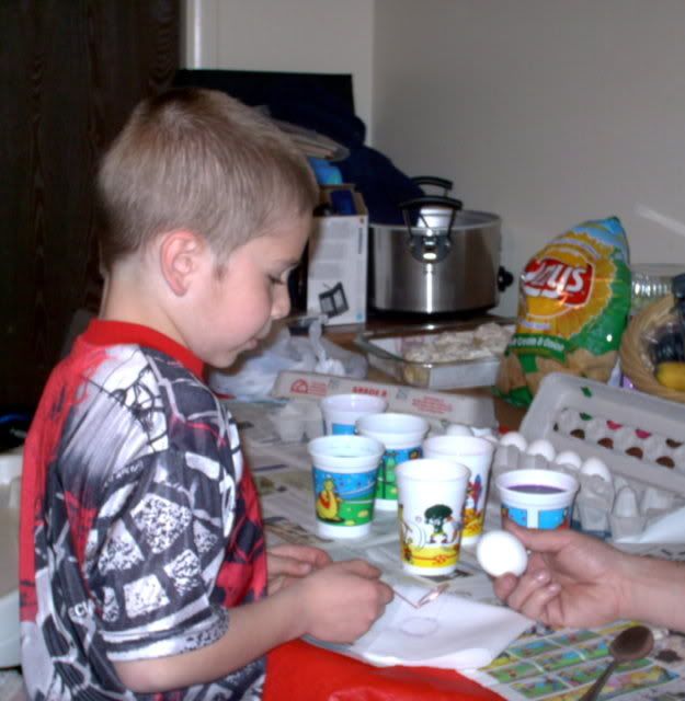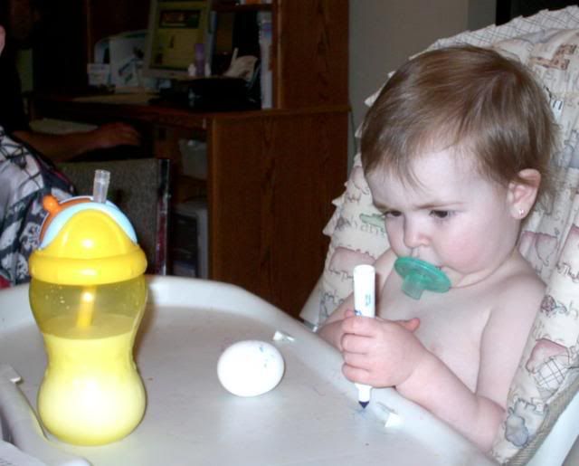 I wasn't feeling up to a huge mess, so for Aislyn's first time doing eggs I let her color on them with markers
