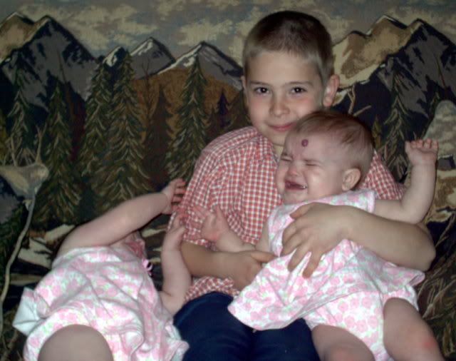 **Aislyn hasn't felt well so she is upset in the following pics because of that. Don't know what Brenna's issue was, feeding off of Aislyn I guess!**