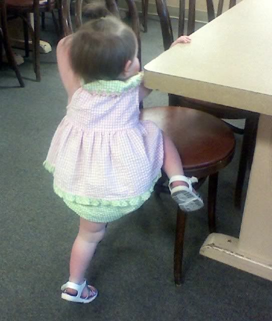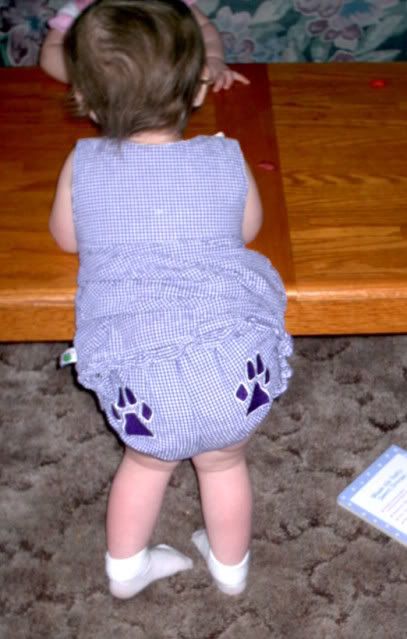 Showing off another cute outfit from G'ma Atwood (its sleeveless shortalls underneath)