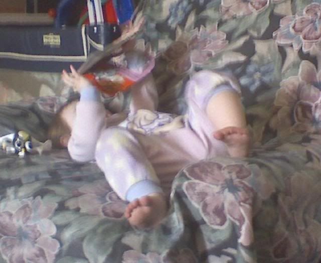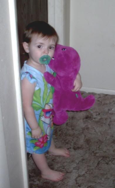 She is addicted to Ethan's old Barney, she has to have him when she is up and when she lays down!