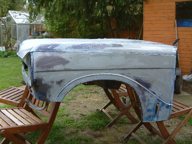 I am no expert on bodywork so I relied on the instructions from various tins, hence all the poor areas were treated with a rust cure followed by primer and will shortly get their final coats and the all important top coats of Triumph white