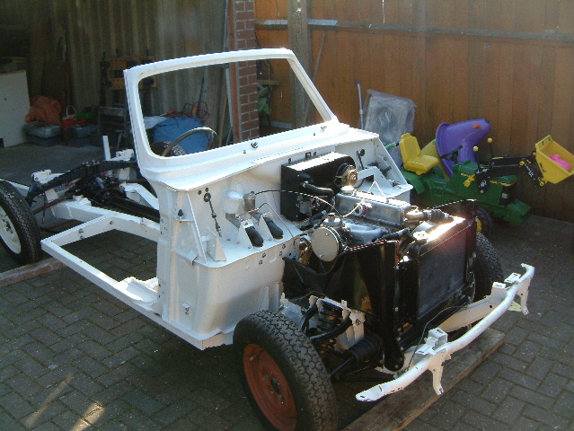 Looking resplendent in 5 coats of Triumph White No: 19 , my spraying is almost as good as my welding unfortunately