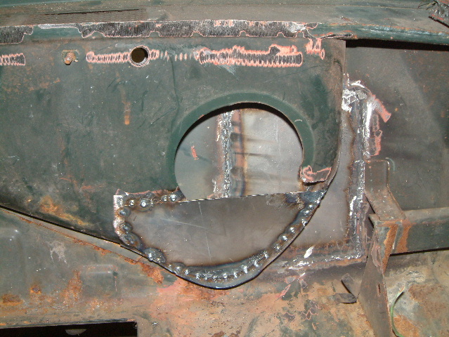 My Patchwork repairs to the Chassis Bracket area. Due to the shape of this area I did it in stages making up plates until I had repaired the whole area. Then fitted the brackets, taking great care to measure every way possible to ensure a good fit when I put it back on the chassis.