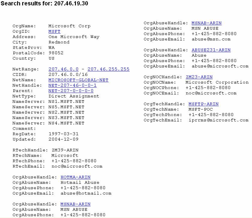 Since the previous command didn’t confirm it was Microsoft we used arin.net/whois which verified that the IP we got was from Microsoft.