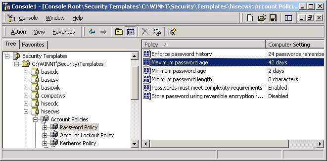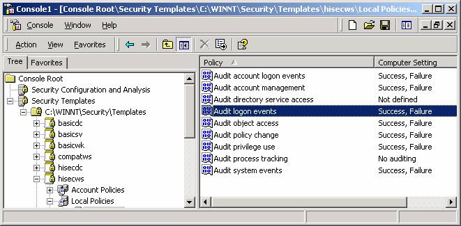 After running MBSA and CIS it was time to harden up our system. That’s way we ran the MMC to first figure our currently settings and then apply the most secure template available.