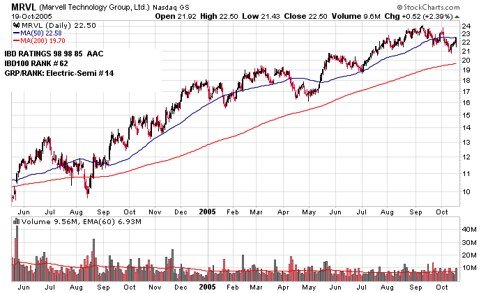 MRVL survived through most down markets through early part of this decade.Here is a good portion of its run including the base that formed in Oct 2005