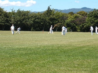 | A second picture from the game against Hutt Districts. This one is zoomed in slightly. The batsman is Priya. WCWCC eventually lost this game by 8 wickets. |