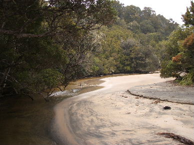The path undulated wildly for an hour or so following the line of the coast, but a few dozen yards inland. Eventually, the track descended to Maori Beach where a stream of tidal water prevents passing at high tides. An alternative route was marked for such occasions. Being the intrepid due we are, we stage-jumped across the rising stream and found ourselves on the long golden sounds of Maori Beach. A few yards later and in a small covering of bush was Maori Beach campsite.