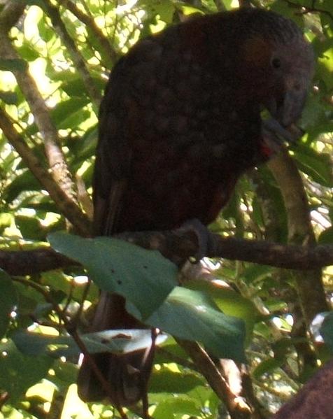| The next bird that we came across was the Kaka. This is a rather large, but good natured parrot that is found in New Zealand. This is different from the Kea parrot, found mostly in the South Island which is considered a pest by some farmers. |
