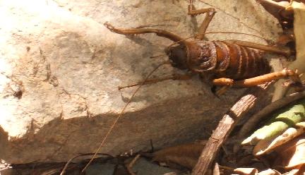 | Hmmm. Yes, well, this was a rather large cricket we found on the island. The length of the abdomen was between 2 and 3 inches, so obviously a bit larger than we'd get in the UK then!!! |