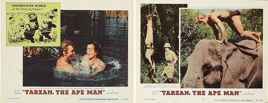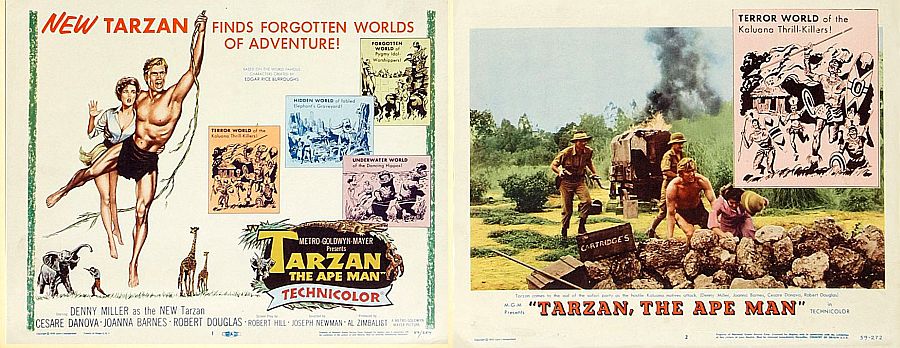 Denny Miller in the 1959 remake of Tarzan the Ape Man. He was the first blond Tarzan. Scenes from the 1932 Weissmuller film were used and tinted in color.