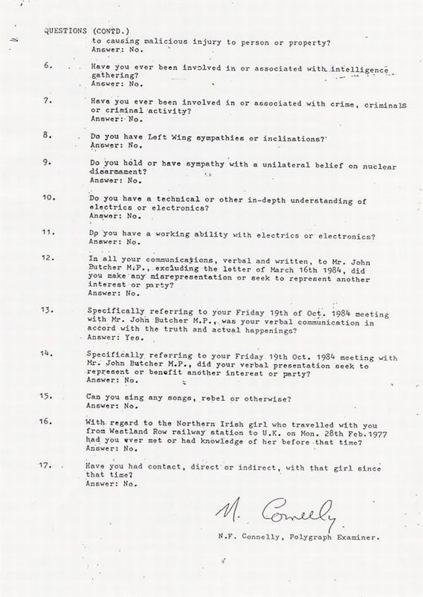 Note (On item three above): See "Pre-examination Comments" on page one of polygraph result. Specifically: "Mr. Kelly stated that he was being kept under surveillance...." They are the words of the polygraphist. The woman was clearly told I was fighting for justice because of an attempt to murder me by intelligence agencies of the United States of America and Britain. I made no issue on surveillance.