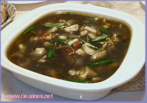 Black soup, sounds weird and yucky but taste yummy! Many people don’t include the black ink sac of the squid when they cooked it, even me, I only include it when I miss my Mother’s way of cooking it, she always include the black ink sac, the good taste hide behind those blacks, she said. And I knew she was always right. I only cooked this recipe once in a blue moon because I don’t like those black liquid sticking on my fingers, lol! Here’s the one I cooked the other day: