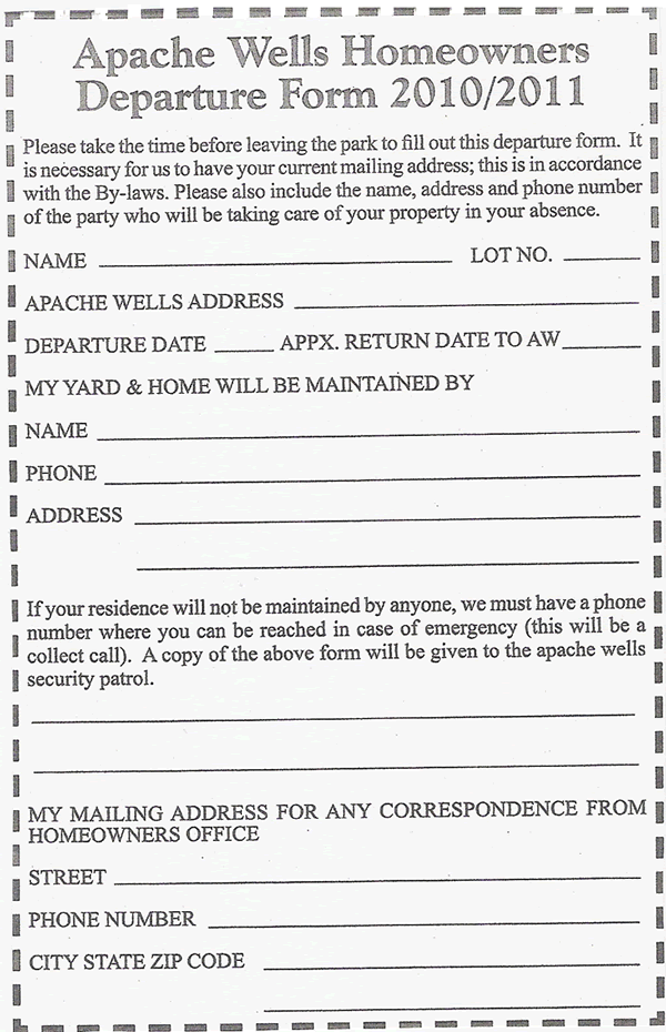 Apache Wells Newsletter The following are excerpts from the latest AWHOA Newsletter that would be of interest to homeowners: