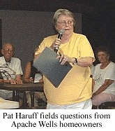 Suppliers: My vote against the pool fence project was based on the cost of the fence alone. I look forward to Jim Bonnell�s report. Ernie Shoults Lot #864 Editor's Note: Ernie Shoults is an agent with Apache Gold Realty and is completing his 3rd year as a member of the Apache Wells Board of Directors. October 10, 2009 Thanks to Bob & Judi Teague for posting a photo of Betty Harper's new home on our web site. It's a lovely home and I for one am so happy that Mrs. Harper came back and rebuilt. Welcome home Mrs. Harper! To all of our Apache Wells residents that donated to Mrs. Harper, thank you so much for your kindness and generosity.... it's good to see our community come together and help someone in such dire need. Joice Lange Lot #1205 October 7, 2009 Auditor Brooks statement that "the records were complete and did not have significant problems" leaves me gasping. While I am not an accountant, I have examined records of the association (hereinafter HOA) and found them most lacking in specificity and clarity. I wonder if Mr. Brooks examined the same records? The report that we overestimated 2008 taxes by $9,878.95 and would be getting a refund of that amount at first seems like a good deal, but when one takes the time to think about it, it raises questions, such as: why, and how, does this happen (apparently the same is true for 2006 and 2007)? Who is responsible for this bad planning? Is it part of a deliberate strategy of the board where by overestimating the budget, especially the annual dues, the board is able to keep raising our annual dues each year? The result is we show a profit each year because of our excessive dues and in effect, we end up paying taxes on our assessed dues.! Talk about double taxation! And all the while, we have no say in the adoption and approval of the budget! What chumps we are! And now it appears that the board is turning over the task of amending our bylaws and other documents to an attorney who apparently has determined that "it will cost more to amend them than to write new ones." And the board is going to pay him $6,000.00!!! To do this? This is a complete violation of our bylaws and the board's duty to "manage the affairs of the HOA!" (Article V, Sec. l A. of bylaws). We didn�t elect the board to decide what attorney to hire to do their work! If they can�t obey our bylaws and constitution they should resign! And what is this �Great Boards� that was mentioned at the August meeting? And why are we having teleconferencing board meetings when we supposedly have an executive committee that is supposed to run things during the 5 month hiatus of the board? Also, why is it costing us $300.00 per month to deposit our monthly dues? This is ridiculous! Finally, why do we have to wait 5 months to find out what happened in the April board and homeowners meetings? Readers: I am convinced that we have a board (and past boards) that doesn�t realize that there is a recession and is only interested in raising our dues each year and spending as much as it can!! And the sad part is: we can�t do anything about it! Too many members just don�t care to get involved or interested! So we get what we deserve!! Lynn Rees, Lot #944 Source: Unapproved Minutes of Apache Wells Board of Directors Meeting August 11, 2009 published in the Apache Wells Roundup October 2009. Don't have a Roundup handy, click here. October 1, 2009 In a recent article on the SAW website it was mentioned that at a homeowner board of directors meeting the building of the fence that separates the new country club and the homeowner swimming pool would cost $30,718. One half of that would be paid by the homeowners. It was stated that "Irv St.John, board member felt that was a lot of money." That is true. I expressed that initial feeling. However, I would like to add the "rest of the story". After listening to more of the information from two board members whose knowledge in this area I respect very much, I accepted this figure as valid. Strong safety, security and code factors are important in building a pool fence.....very different from a golf cart pen! If I had been clairvoyant and knew that my first reaction to the beginning of the information presented was going to be used as a tool for the naysayaers of the project, I would have verbally expressed my belief at that time that it was a good decision. Please, do not use the first "quote" in future writings without adding my now expressed belief that it was a necessary expenditure. I would like to take this opportunity to express my appreciation to all those who have worked so diligently to keep the dream alive, even after the lawsuit failed, to plan and develop a wonderful building which will be the pride of the community. Thank you to all those who have donated thousands of dollars beyond their assessment and to the non-members who have contributed. Not only is it great for golfers, but all residents are welcome to use the bar and grill. Perhaps the greatest appreciation will be when that time comes when we will be selling our homes and the value will have increased due to enhanced amenities, provided by your homeowner and country club boards. Sincerely, Irv St.John Lot #114 October 2, 2009 I also do not think much of the way the $30,000.00 fence was handled. It is typical of the way our board has done things for years, i.e. namely making deals with the country club without any notice to we homeowners and in violation of the "conflict of interest" provisions of our bylaws and constitution. It is very troubling to see this board continue the wrongful ways of past boards. We don't know if any bids were obtained and just how the contract was entered into between the board and the country club if there was such a contract. This sort of thing must stop. Lynn Rees Lot #944 ISN'T IT SAD! Here we go again! Once again our AWHOA Board of Directors and the AWCC Board of Directors have been working "Hand in Glove" without any input from the homeowners. 