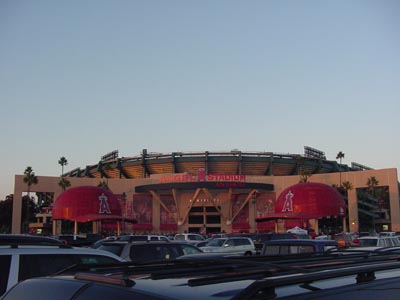 After practicing with my band, Mallicide, I headed off to Angels stadium. Katy had three extra tickets and I was one of the lucky ones that got to go. The seats were great; 20 rows up right between home and first base.