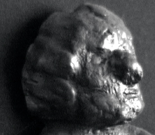 #9 Unlike most of the objects with shelves and captions, the shelf for this object is located in the first room of the spaceship, where the couch and the monitors are, in some spot that wasn’t shown in “Gosk-Part I” or “Gosk-Part II”. Its shelf is empty, and features a caption describing its (missing) object as “Product of a Failed Attempt to Create an Earthling Grandchild of George Washington and King George of England.” The greenish-blue egg-shaped rock is lying in the middle of the floor near the shelf.
