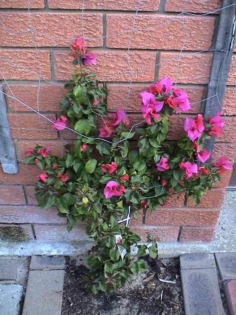 Has taken off with an aveangance, now that the warmer weather is here. I planted it during the winter months and it sat there looking very sad and sorry. I was worried it may not last the distance. But looking at it today, its done us proud, and climbing with speed and enthusiasm. Here it is: