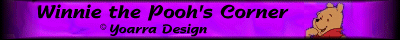 | THANKS FOR VISITING MY BANNER EXCHANGE PAGE! THE BANNERS ABOVE ARE MINE, IF YOU WANT TO USE ONE RIGHT CLICK TO SAVE IT AND THEN LINK IT TO https://www.angelfire.com/stars2/pooh IF YOU HAVE A BANNER PLEASE EMAIL ME AND LET ME KNOW, IF ITS KID FRIENDLY I WOULD LOVE TO PUT IT ON MY PAGE! |