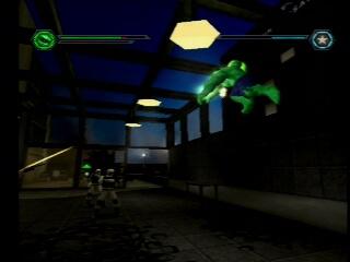 And now we come to control. As was Wolverine, Hulk controls a bit sloppy, but it really doesn't matter since you'll be mashing the A button most of the time. One significant problem is aiming. It's tough to get Hulk to face exactly where you want him to, and using the lock-on function is mostly useless, because enemies are almost always in groups of 4-8, so you probably won't lock-on to the guy you wanna hit. Like I said, just pounding the A button will do fine in most cases. Another problem is launching the rage attacks. One of them is B+Y, and as those familiar with the GCN controller will know, pushing those buttons at the same time is quite the task. Luckily, you can also press Y+X to do (I think) the same attack. Another problem is the first-person look. Control is way too sensitive and it's basically useless. Final gripe here is that you have no control over the camera whatsoever, which changes angles with the wind. So, I'd say the controls are mediocre at best.