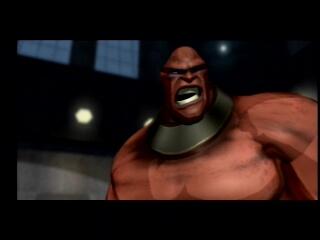 So, now that I've covered every possible aspect of gameplay, what about the rest? I'll start with graphics. Just to give early warning, this game is cel-shaded. But not in the traditional sense. Only the characters really look it, and it's more of a comic type shading than a cartoonish style. All in all it looks pretty good, especially on the non-human characters. The environments are pretty well done, but some of the textures just don't look right. Not that they're all pixely like in Super Mario Sunshine, but there seems to be a lack of detail. Other than that small problem, the game looks very nice, and even the most spoiled of graphics babies should enjoy the way Hulk looks.