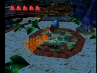But that's the tricky part, it really not. on the title screen, you can access a second mission by holding A and pressing start. It's the same level, just a few things have been moved around and the bad guys have gotten tougher. So what's your mission? Get to the top of the same tower you got on to beat the last misson and get another Courage Emblem. So let's take a closer look at this: Collectible objects, different missions in the same level, excellent gameplay... I think we've got another Super Mario 64 clone on our hands. Yay! Maybe Banjo and Kazooie won't be missed as much if Billy is good enough to take their place. And for what I've seen so far, the little chicken-suited boy will go above and beyond the crow of duty.