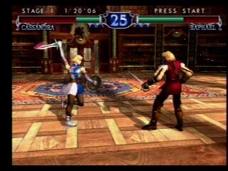 Next on the chopping block is the insanely popular Soul Calibur II. I often wondered why it was so popular, and now that I've played it I have a very good idea why. Now I usually don't like 3-D fighting games. Tekken, Virtua Fighter, whatever. Not my proverbial cup of tea. But SC2 manages to pull off what only Bushido Blade has been able to do so far; make me like a 3-D fighting game. It's gotta be the weapons. But I don't just like SC2, oh no. I love the damn thing. Even if I only have access to two characters, I can see myself playing this a lot until I get the full game. Speaking of those characters, the two given are Cassandra and Nightmare. Possibly the two most opposite fighters in the game. Cassandra, my choice of the two, is small and fast. Nightmare on the other hand, is a huge lumbering monster with the biggest sword you'll ever see. The demo is only four enemies long, but there's two-player support so it's got more replay value than any of the other demos.