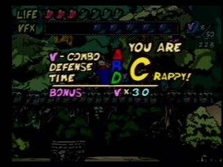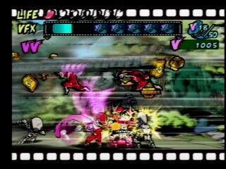 But now that I've spoken of the superficial stuff, let's get down to the meat and potatoes of the game. The audio is great, music is catchy and sets a very nice tone for the game. As for voice samples, all the voice acting is great, with some well written and often funnny dialogue. Some of the best being Joe's "Henshin-A-Go-Go-Baby!!" and the "Yummy!" that's produced when he picks up a life-replenishing burger. The gameplay itself is very simple and extremely fun. The controls are very easy to pick up and learn, as it doesn't even use all the buttons. Not like Splinter Cell, which had like five actions for each button. The demo level consists of several parts which are cleared by killing so many enemies and/or reaching a certain location. After every little part, you're given a rank based on your Time, Defense, and V-Combos. Ranks for each stat go from V to D, and add up to a bigger rank. So far I've achieved 3 different ranks; Awesome, Baaaad, and Crappy. I'm not sure if you can get a V or D as your final rank, I've never done that good or bad.