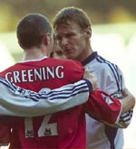 The best chance fell to Ferdinand after 34 minutes. Fine interplay from Anderton, Freund and Taricco led to Anderton playing in Ferdinand only for Ugo Ehiogu's last-ditch tackle to do enough to put the striker off.