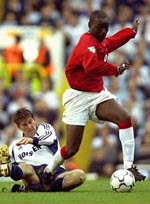 Five minutes later and they were ahead, a delightful move ending with Solsjaer's flick into Veron who shot into the corner from 15 yards.