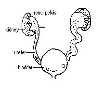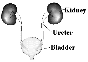The normal urinary tract is made up of the two kidneys, two ureters, a bladder and a urethra. Each of the kidneys produces urine which flows down through the ureters and into the bladder. Normally, each ureter enters the bladder at an angle that creates a tunnel through the bladder wall muscle. As the bladder fills and during emptying, this tunnel prevents any urine from backing up from the bladder into the ureter. By the end of urination, nearly all the urine has passed from the bladder and out of the body through the urethra.