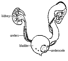 Duplications: perhaps 1% of all humans have two collecting tubes from a kidney. These may show up on fetal ultrasound. Occasionally patients with duplication have a ureterocele, which is a balloon-like obstruction at the end of one of the duplex tubes.
