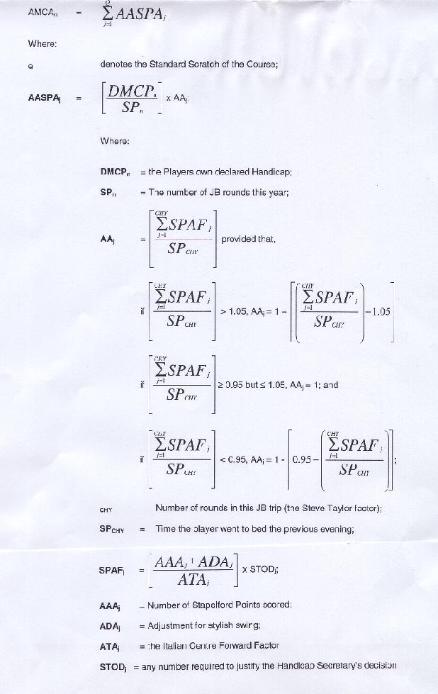 the Handicap Adjustment Formula so members can verify for themselves the