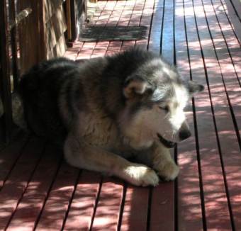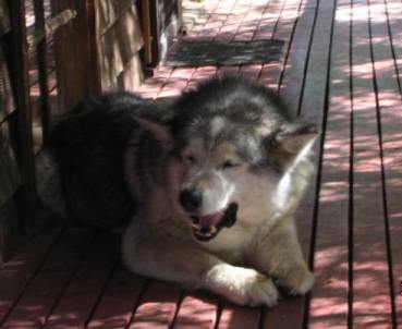 The following pics are Nikita at 11 1/2 years of age, munching on a bone while guarding the house on the front verandah. (yeah, right!) Nikita is one of those special dogs. She gave me my beautiful Gidget, is an absolute horror in the ring (which is the reason I quit showing her), and is the undisputed boss of the boys. She thinks she is permenently in season, and tarts up to any doggy, whether male or female, Nikita doesn't care....Nikita was sold at 8 weeks, and we were lucky enough to get her back at 18 month of age. After giving us 2 litters, Nikita decided that her duty as a mother was done! If I could breed more bitches with bone, structure and temperament like her I would be the happiest breeder in Victoria.