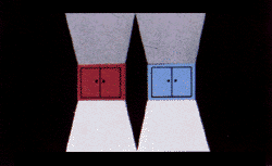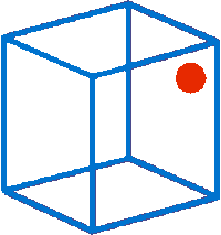 Is the red ball outside the cube, inside the cube near the front, orinside the cube on the side? Where do you think it is?