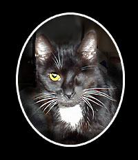POOSAY-MOOSAY, a domestic short-haired tuxedo Persian,