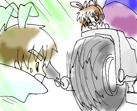 ![]() Dear Diary, Little Sakura was desperate of having a home, so I've decided to come crawling back to my owner Sakura. I'd do anything for Little Sakura, so I found out where Touya's working for his part-time job, and planned to hitch a ride on his motorcycle. When I finally found him outside a fastfood restaurant, Little Sakrua and I jumped on the back seat without him noticing. But the terrible moment was when the wild cat came for revenge. It attacked me, and I fell off the motorcycle!! I ran and lost the stupid cat, but I couldn't catch up with Little Sakura. Now I'm all alone...I just hope Little Sakrua's fine... ~Syaoran the Rabbit |