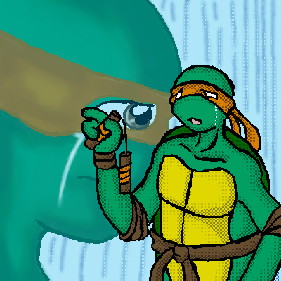 Sadden Mikey This is what I figured to be Mikey's reaction to Splinter's death. Inspired by Dan and Maria ^^! (Teenage Mutant Ninja Turtles)