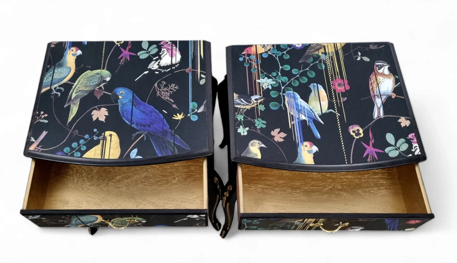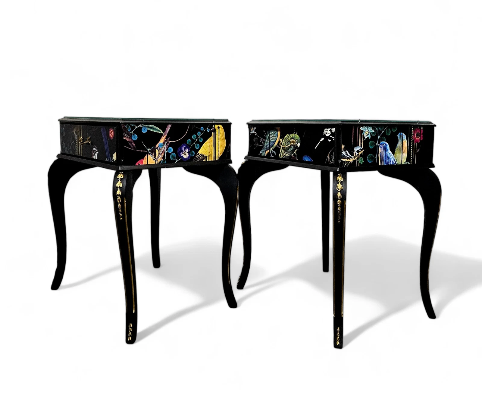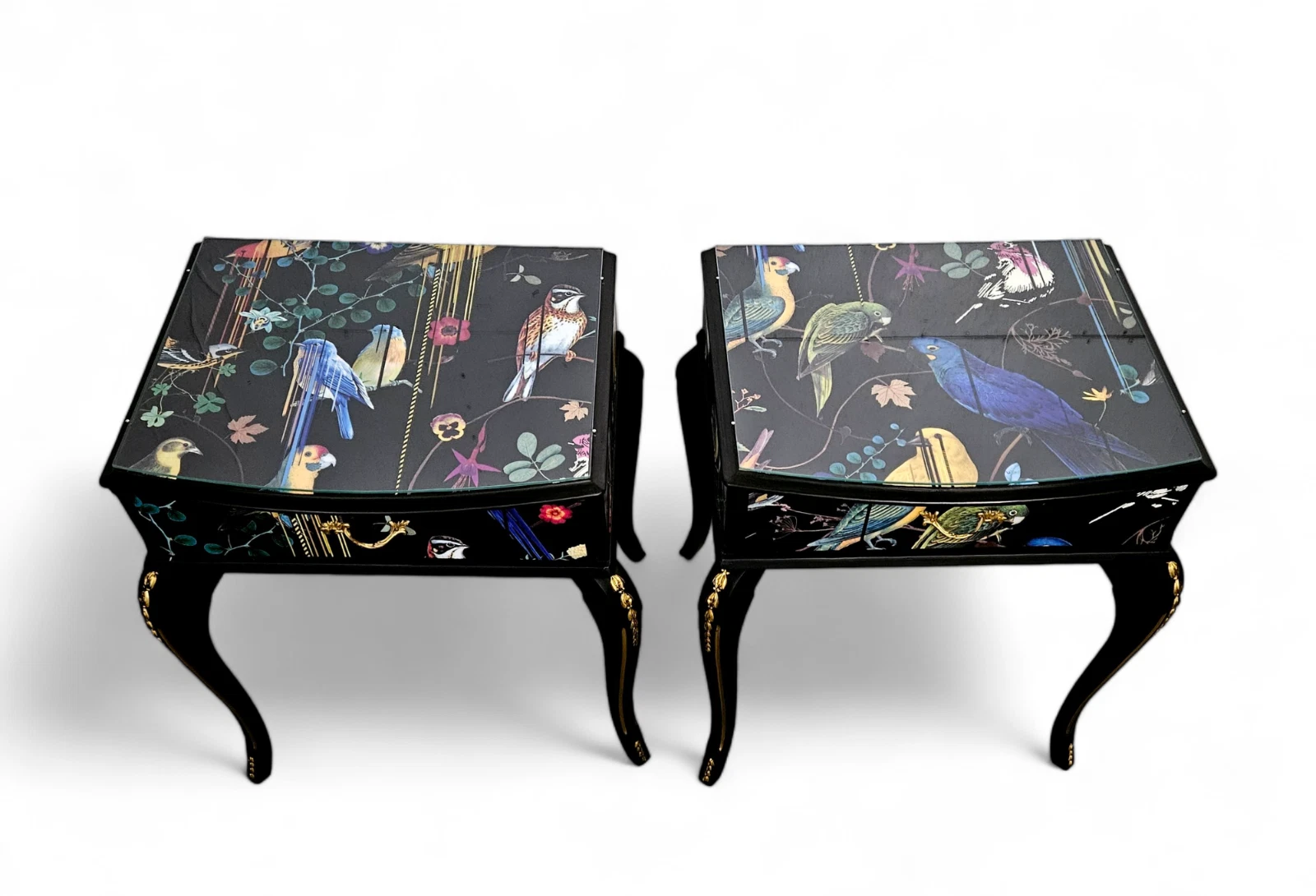 | Professionally Upcycled Vintage Bedside Tables with Christian LaCroix Decoupage item number:305323309434 | |