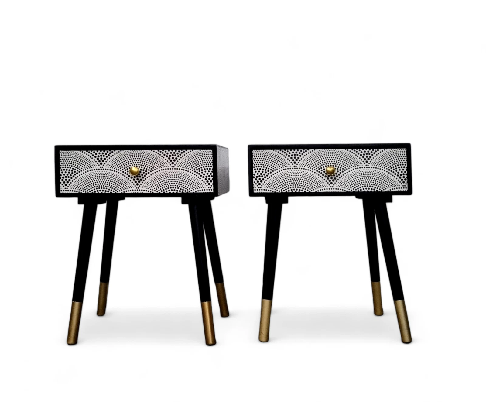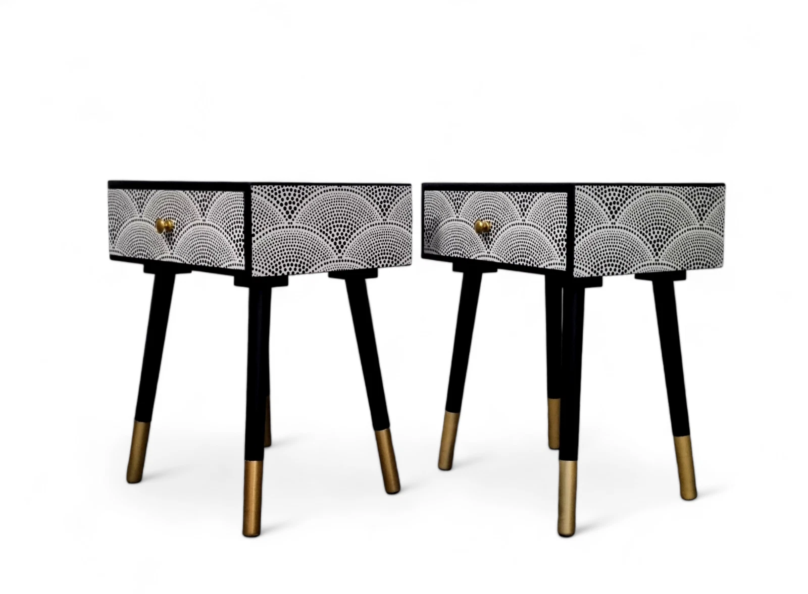 | Professionally Upcycled Vintage Bedside Tables with Metallic Nizwa Decoupage item number:296350114694 | |
