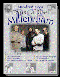 A CONGRATULATIONS TO ME, I WAS CHOSEN AS ONE OF THE BIGGEST BACKSTREET BOY FANS IN THE WORLD. I WILL BE FEATURED IN THE BOOK FANS OF THE MILLENNIUM. TO ORDER YOURS NOW GO TO WWW.FANSILLUSTRATED.COM BEFORE THEY ARE ALL SOLD OUT!!! I WAS ALSO CHOOSEN FOR THE 2ND BOOK- "THE ULTIMATE FANS"