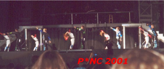 Lots of Nsync.....hee hee, I still can't believe how big this concert was...but seeing this picture helps me to realize the size of it...coming out of the screen..that is so creative. :)