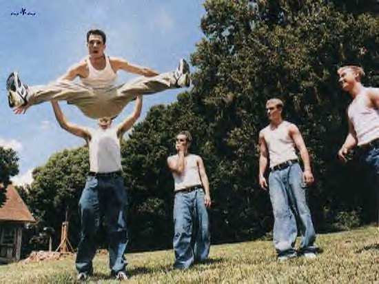 As far as Justin? Yeah...but the first thing I noticed was JC. He's coppin' a feel of Chris' junk, and Kirky ain't diggin' it.